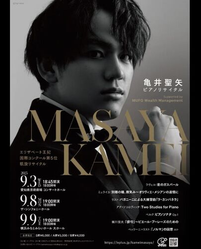 "Kamei Seiya Piano Recital Supported by MUFG Wealth Management" to be held! The "Kamei Seiya Piano Recital" will be held on September 3rd, 8th, and 9th, 2025. We look forward to your attendance. Seiya Kamei Piano Recital September 3, 2025 …