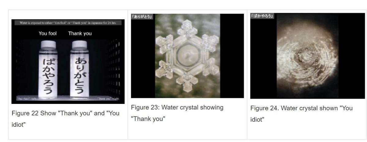 This was the idea. So Masaru Emoto instructed his staff to freeze the water and examine the shape of the crystals.